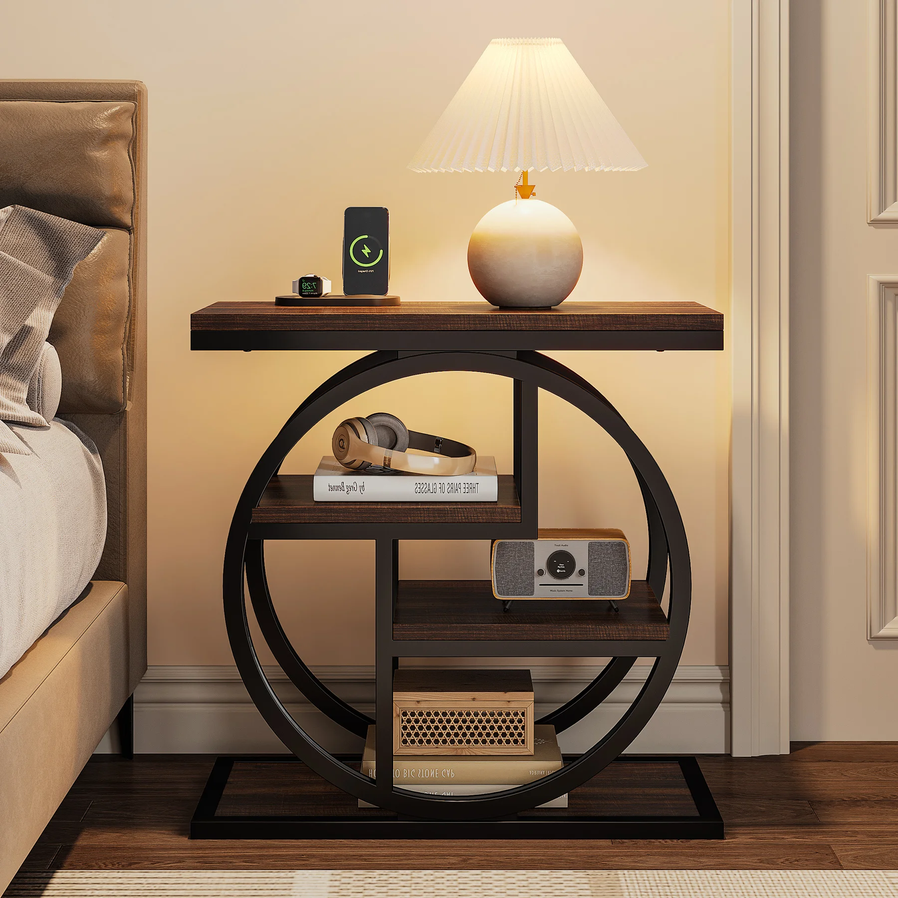 Designed with four open shelves, this side table offers plenty of space for books, lamps, plants, remotes, and other daily essentials. Keep your living space organized while adding a stylish storage solution to your home.